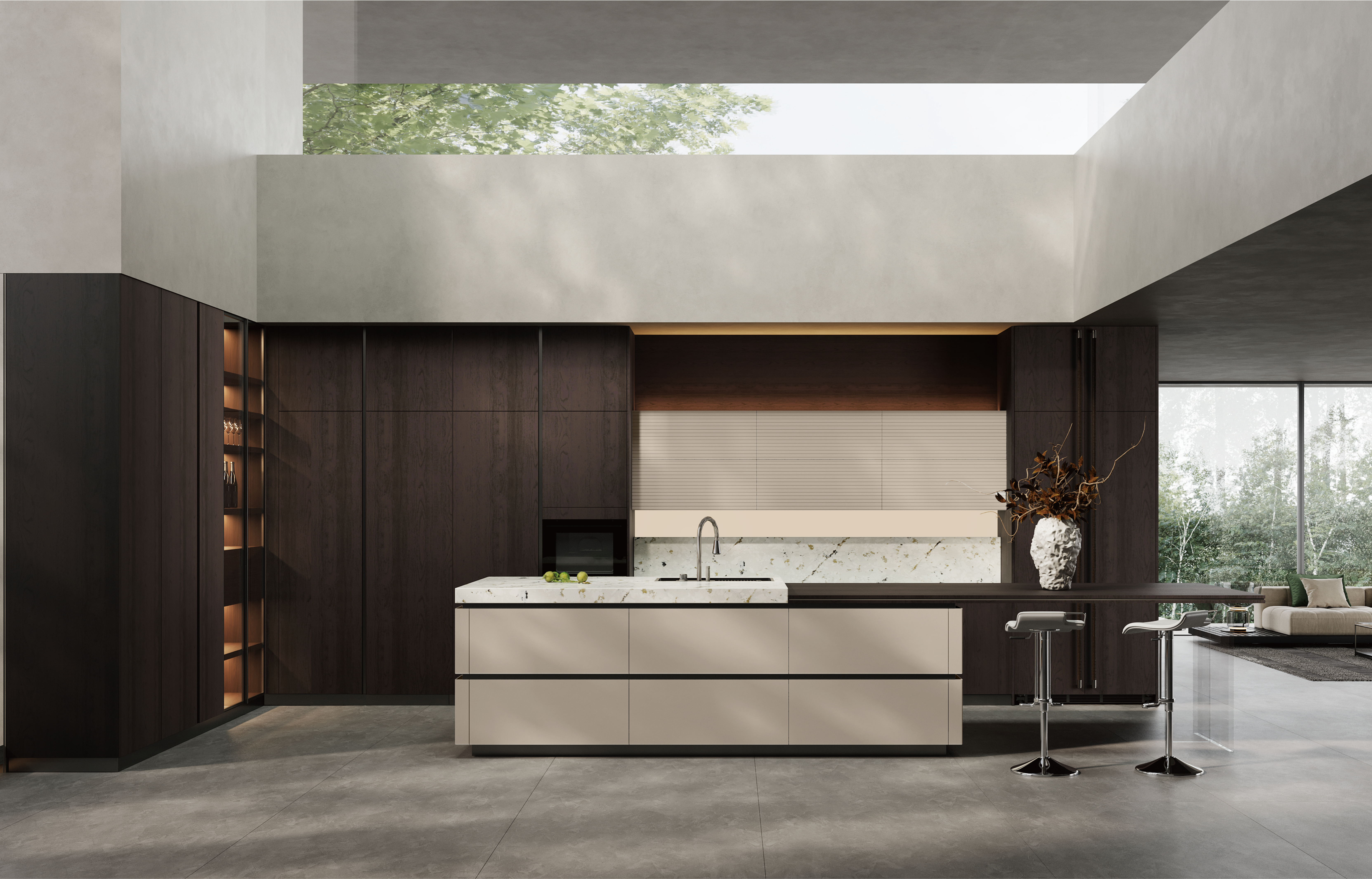 通过凯时官网厨柜量体裁柜,定制出适合主厨下厨的烹饪区和洗涤区的舒适高度。